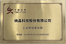 2022年09月 被認(rèn)定為國(guó)家“專精特新小巨人”企業(yè)。